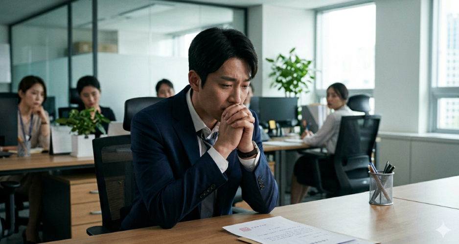 사진은 성희롱 사건 진술 후 부당한 인사조치를 받은 직원의 모습을 연출한 장면. <이미지=생성형AI>